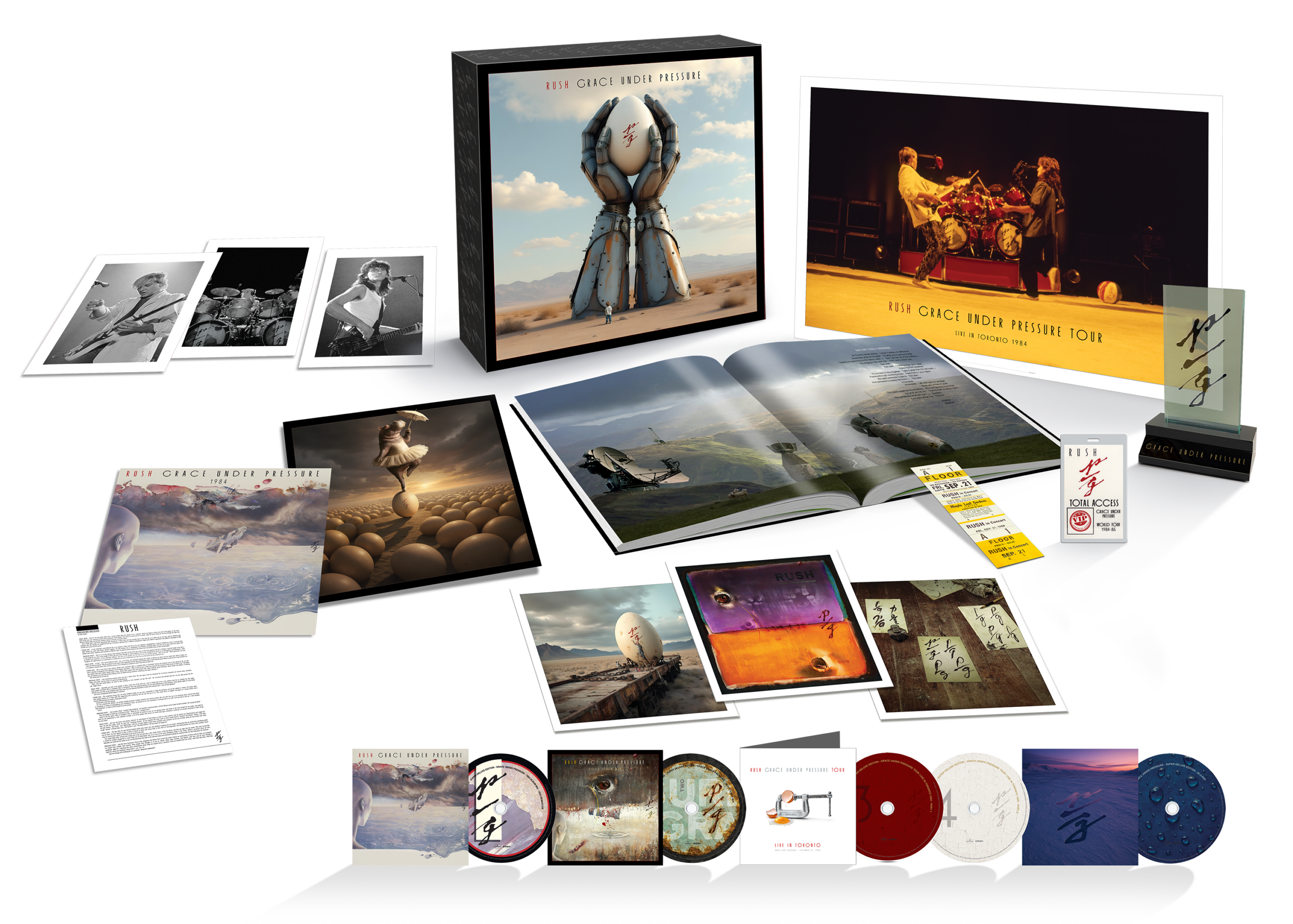 CD3 and CD4 present the first-ever complete setlist of the show Rush performed on September 21, 1984, at Maple Leaf Gardens in Toronto, which was also newly mixed from the original multitrack audio masters and has now been retitled Grace Under Pressure Tour: Live in Toronto 1984.